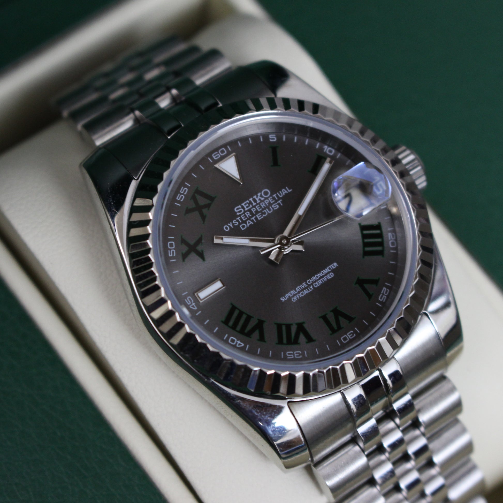 Inspired by the iconic Datejust design, and featuring the prestigious Seiko NH35 automatic movement, we present the Seiko Mod Datejust. A 36mm high-end quality watch combining the perfect alliance between excellence and accessibility.