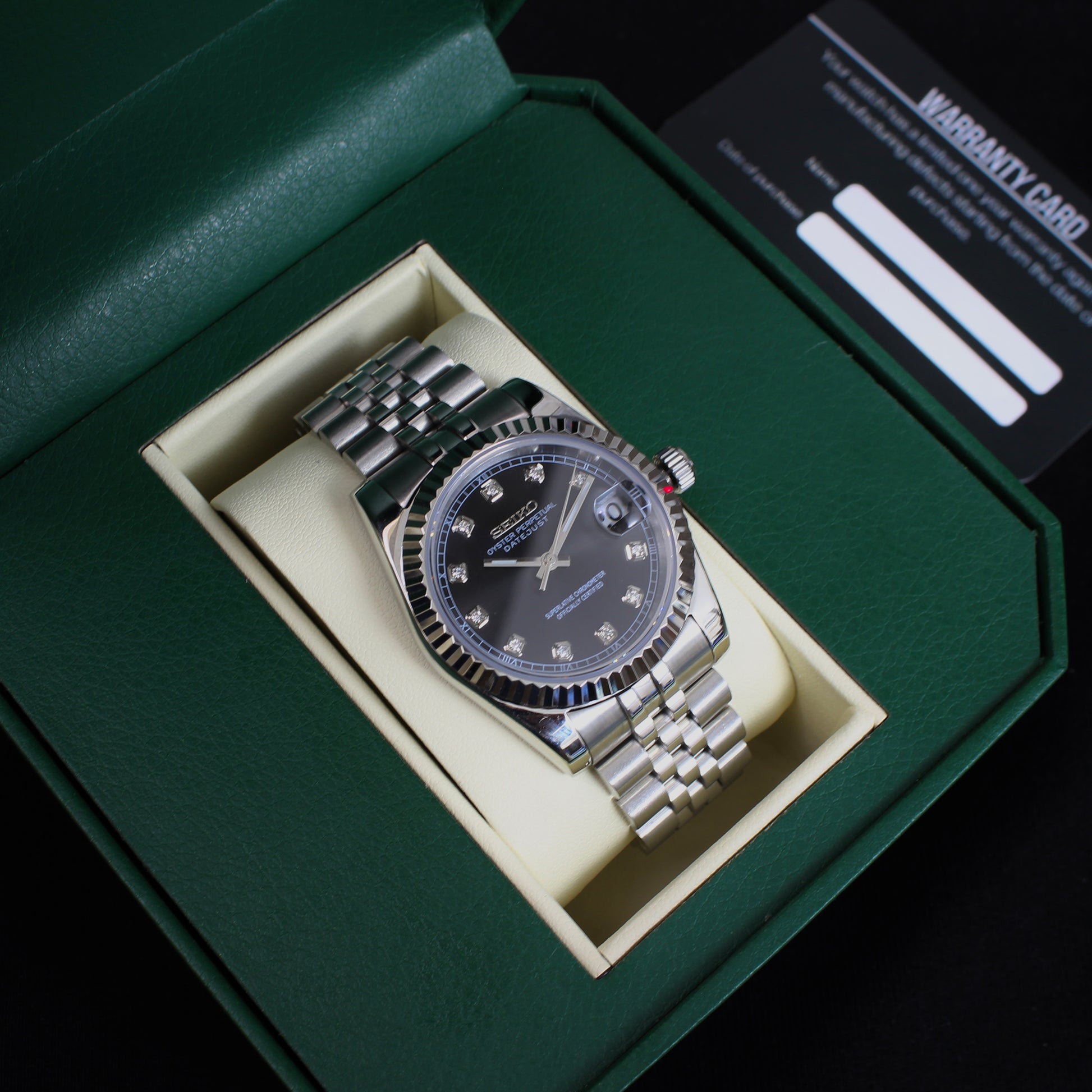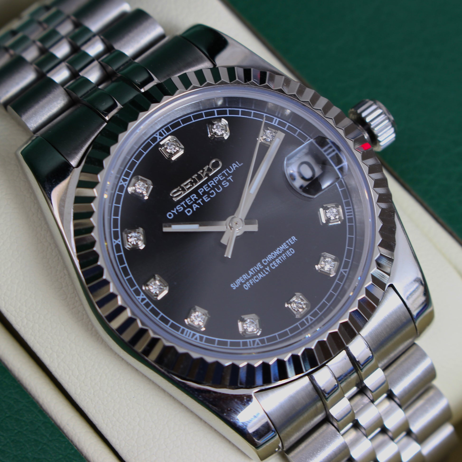 inspired by the iconic Datejust design, and featuring the prestigious Seiko NH35 automatic movement, we present the Seiko Mod Datejust. A 36mm high-end quality watch combining the perfect alliance between excellence and accessibility.