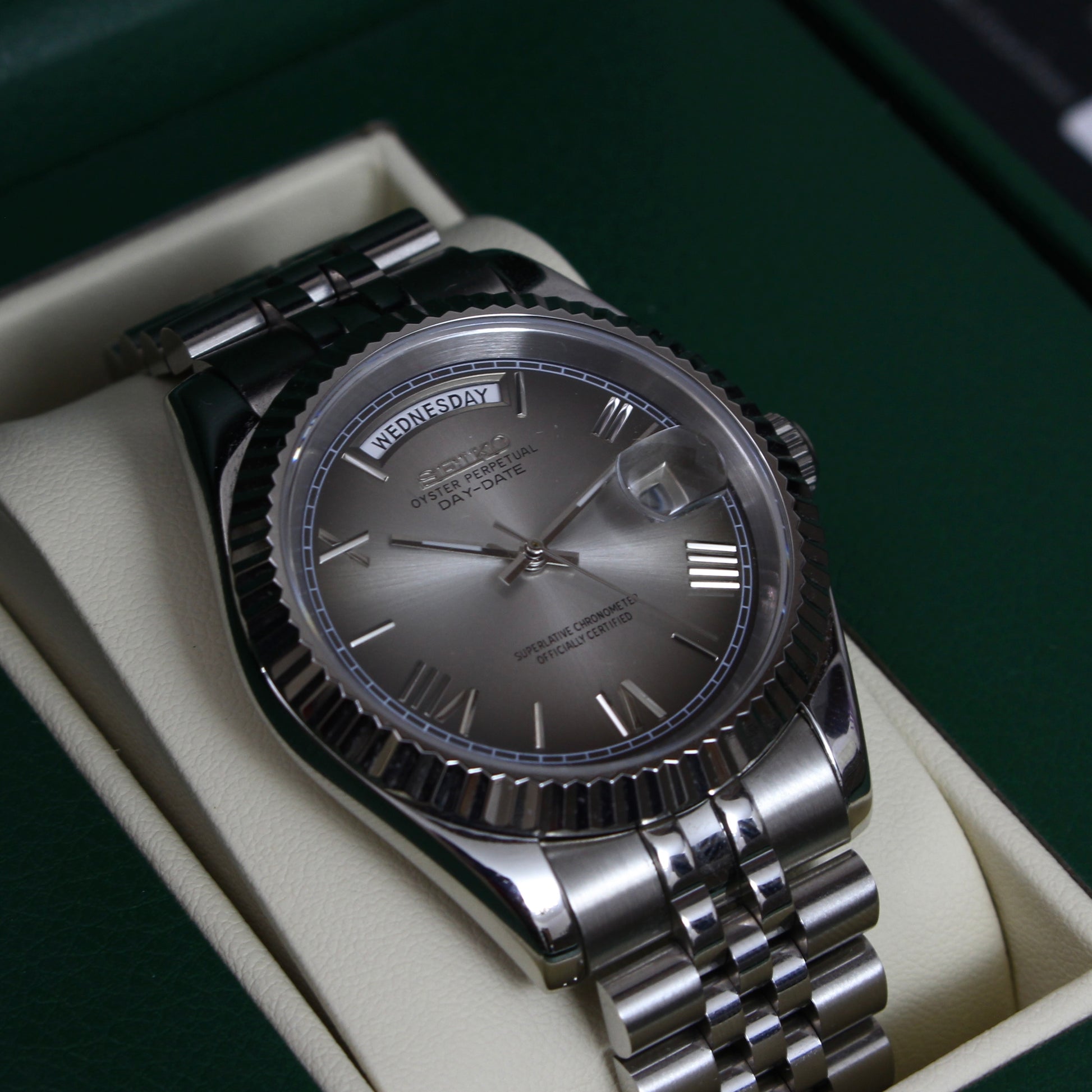 Inspired by the iconic Daydate design, and featuring the prestigious 8285 automatic movement, we present the Seiko Mod Daydate. A 39 mm high-end quality watch combining the perfect alliance between excellence and accessibility.
